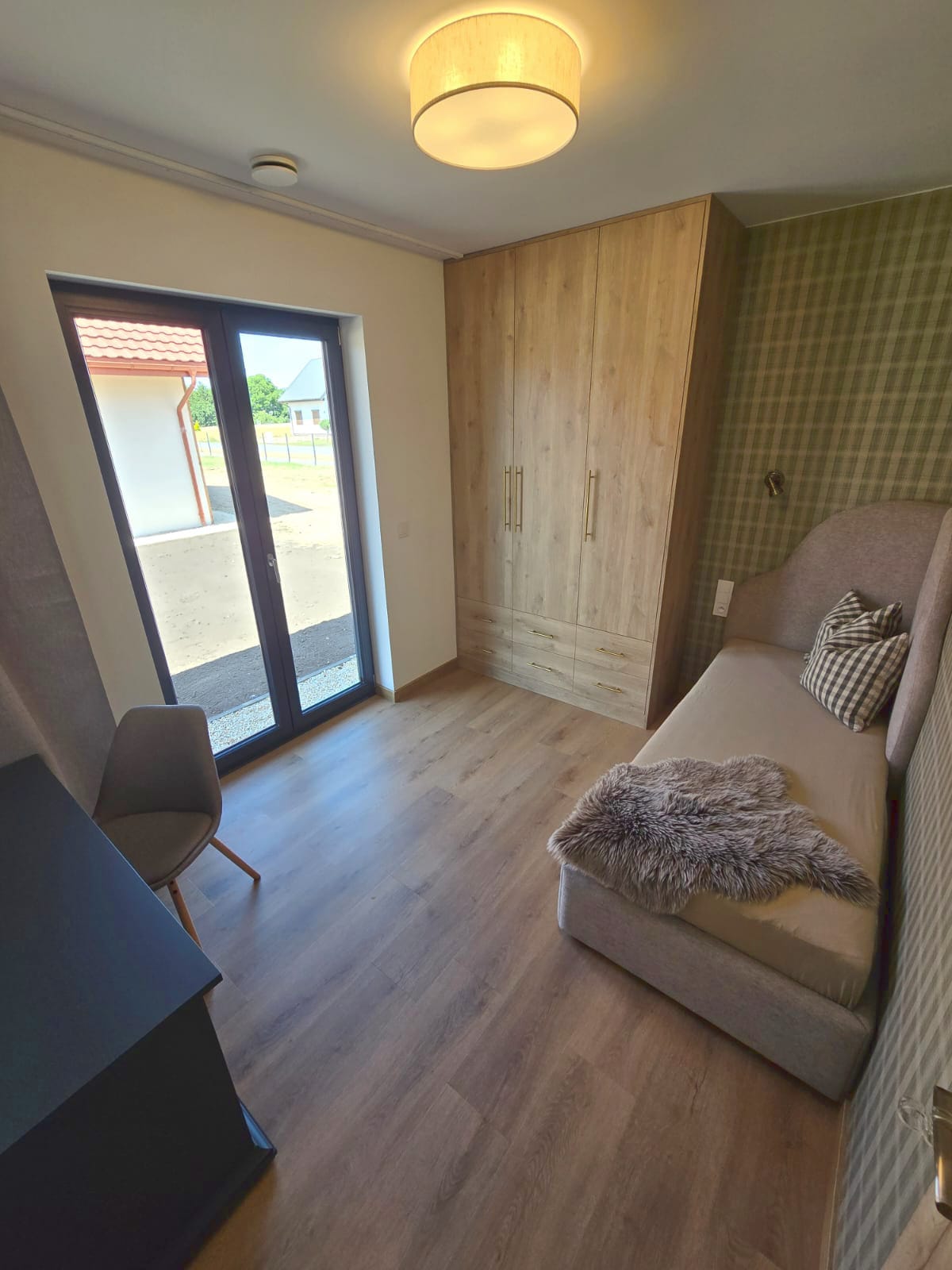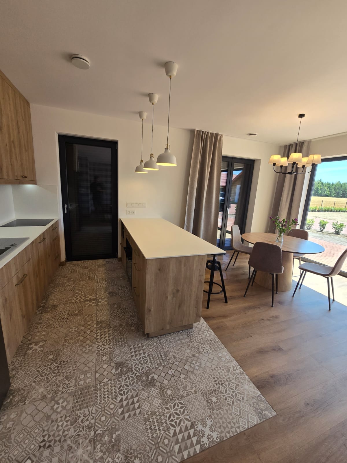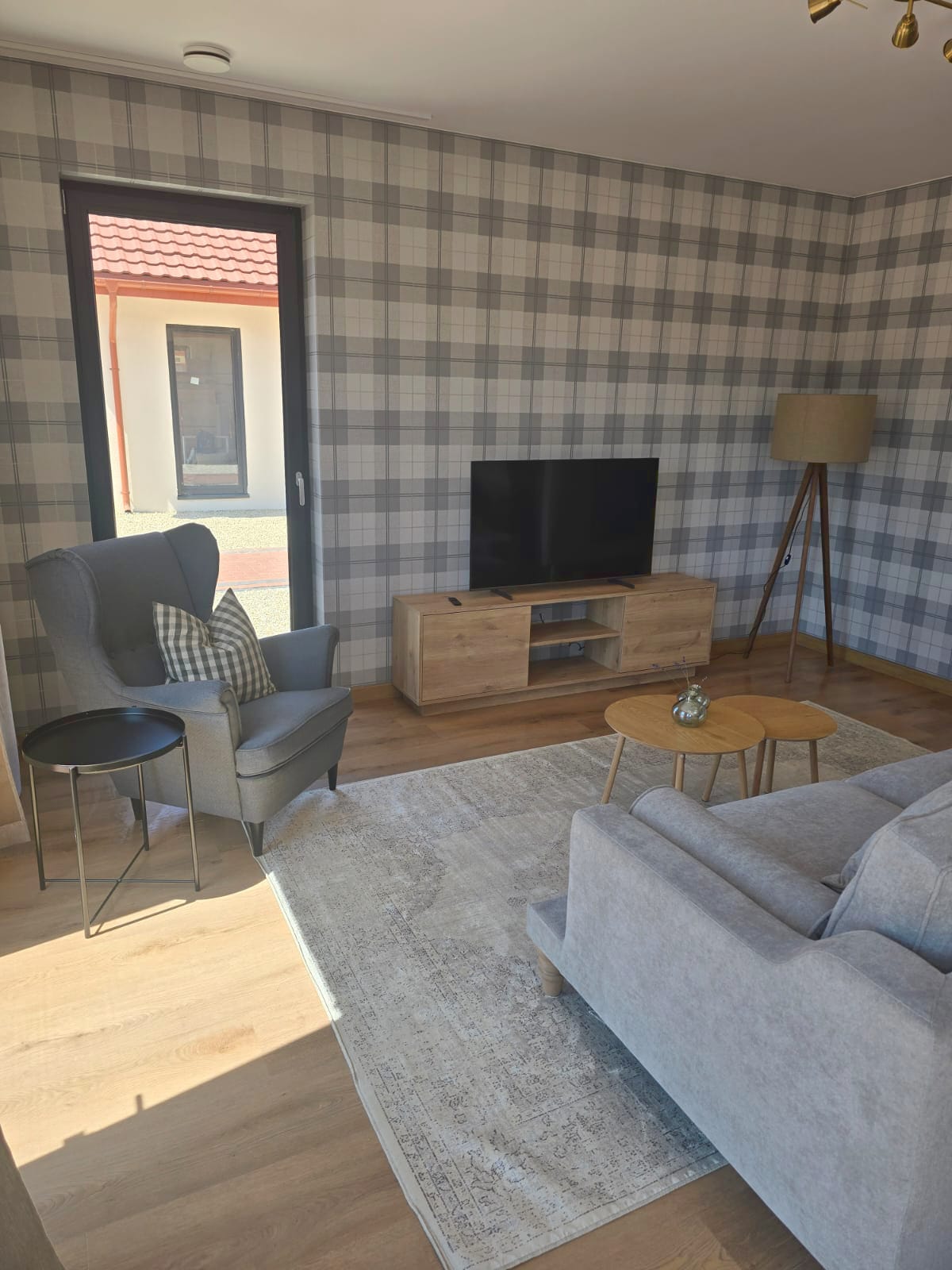 This spacious 100 m2 house is a perfect place for family getaways or time with friends. Guests have at their disposal 3 bedrooms (one double bed and two single beds), a living room with a kitchen, a private bathroom with a bath and shower and a separate toilet. The house features a fully equipped kitchen (stovetop, oven, microwave, kettle, and utensils) as well as practical amenities such as a washing machine, clothes dryer, and an air conditioning.