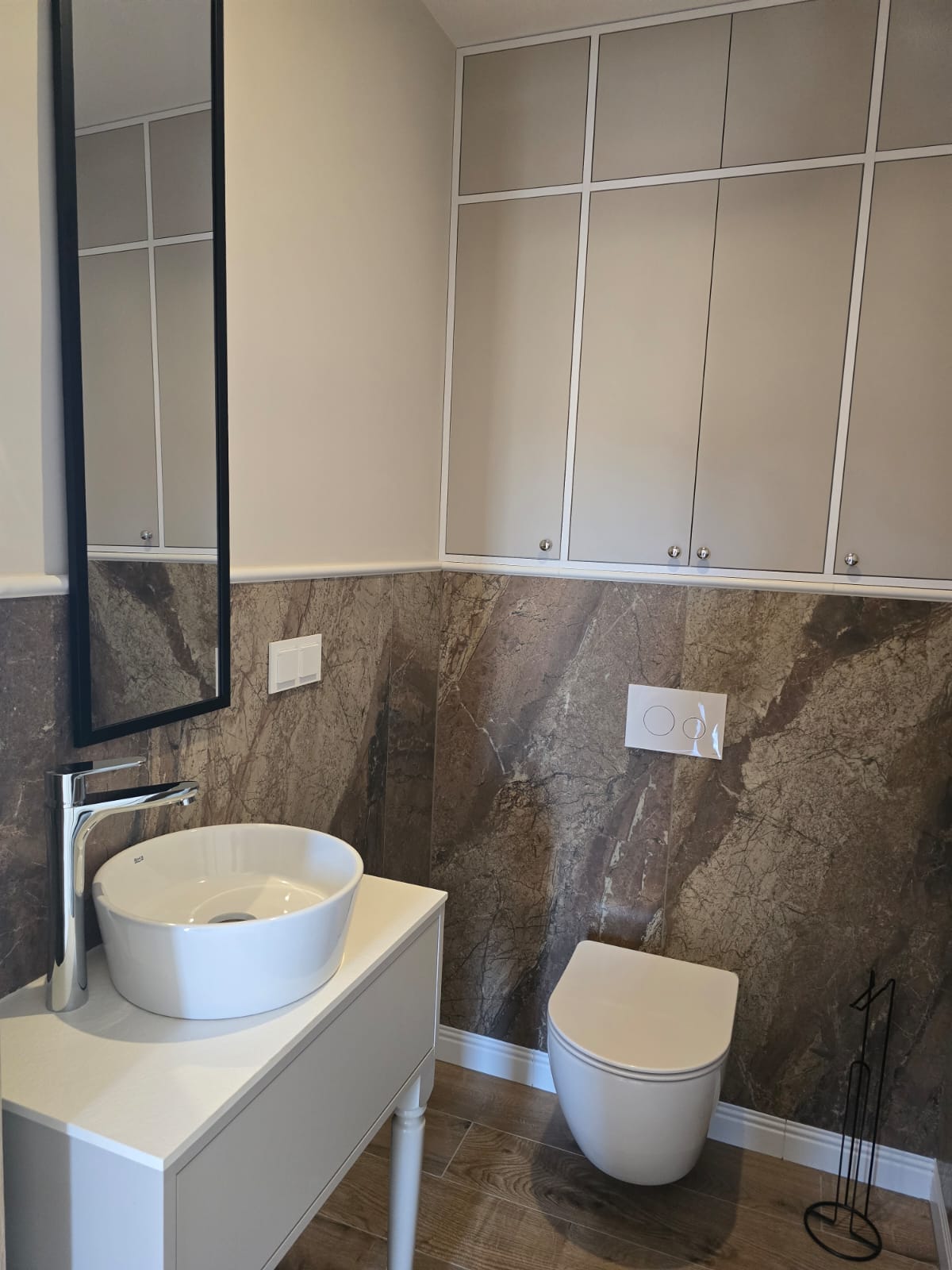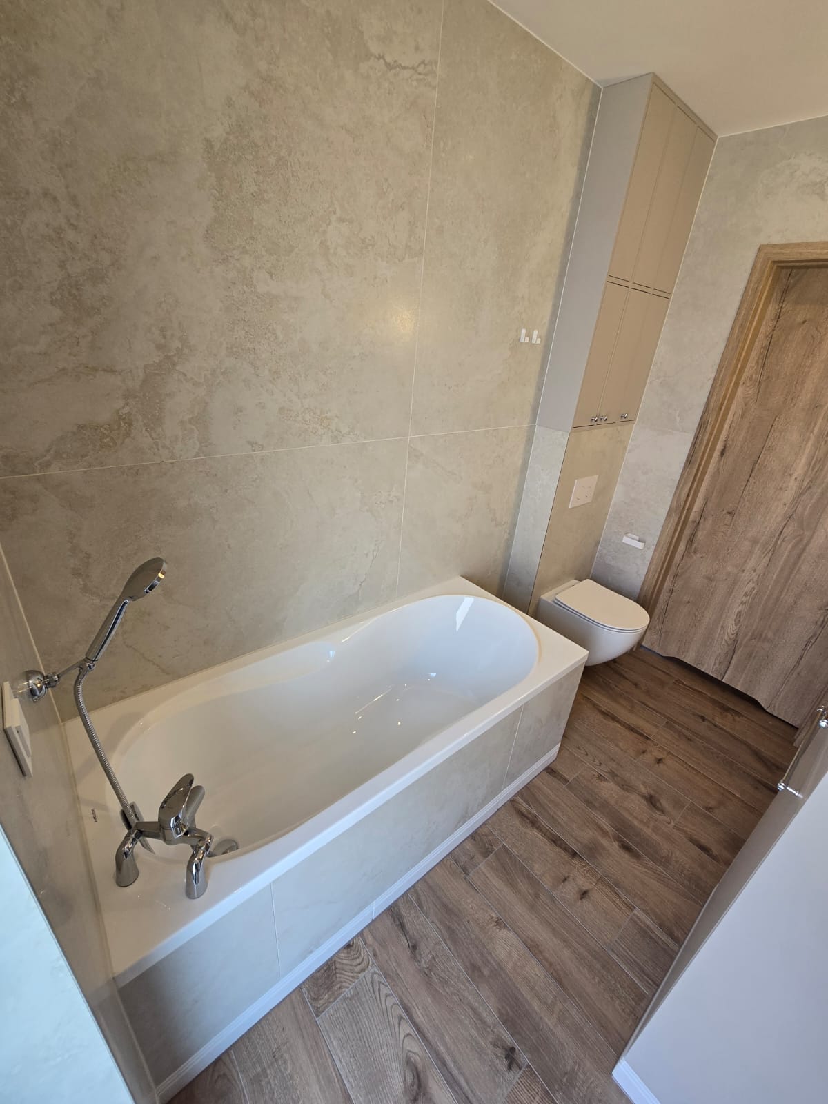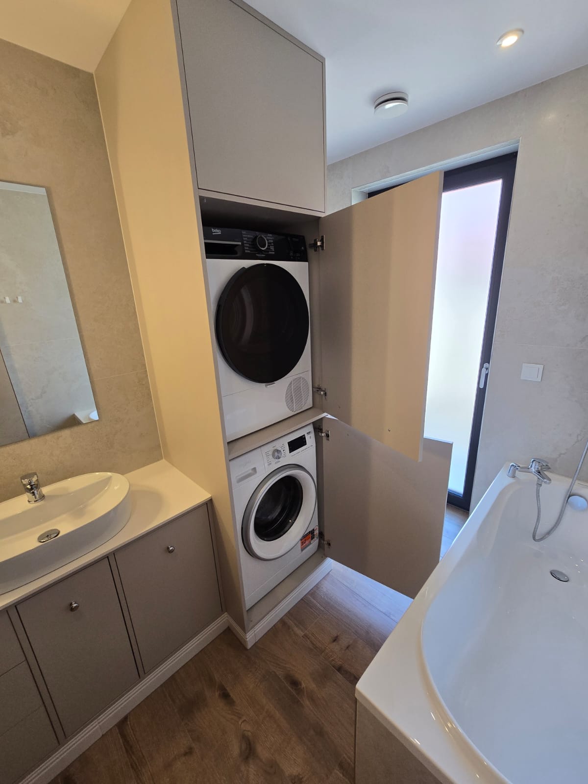 This spacious 100 m2 house is a perfect place for family getaways or time with friends. Guests have at their disposal 3 bedrooms (one double bed and two single beds), a living room with a kitchen, a private bathroom with a bath and shower and a separate toilet. The house features a fully equipped kitchen (stovetop, oven, microwave, kettle, and utensils) as well as practical amenities such as a washing machine, clothes dryer, and an air conditioning.